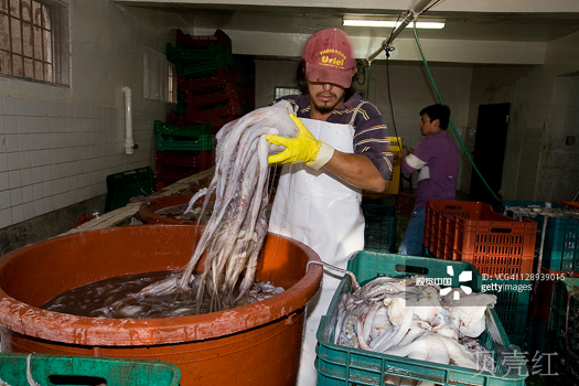 雖然在水中洪堡魷魚有很強(qiáng)的生命力,但是離開海水,只能存活幾十分鐘或幾個(gè)小時(shí)。機(jī)智的人類常用閃光魚鉤誘捕洪堡魷魚,超巨型的被送到博物館做研究、展示,一般大小的就成了人類的盤中餐。