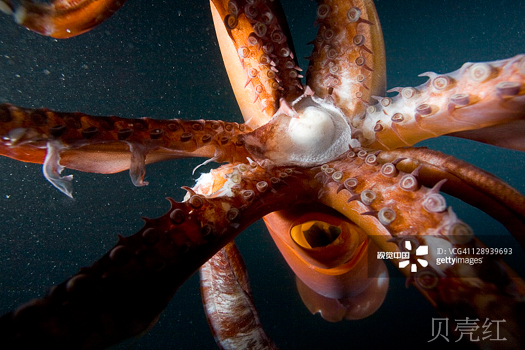4、它有兩只巨大的眼睛,平均直徑可以達(dá)到五厘米,微光條件下視力比人類好200倍,有三個(gè)心臟,藍(lán)色血液,有八只觸手,每條觸手由160多條肌肉組成,上面約有300個(gè)吸盤,每個(gè)吸盤的拉力為100克。