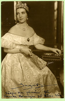 1933年瑞典公主英格麗(后來成為丹麥皇后)向嫂子施拉比王儲妃借來這頂皇冠和配套首飾,在一場慈善假面舞會上裝扮成她的祖先約瑟芬皇后。